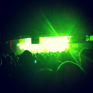 Evidemment, le public était tout acquis à la cause d’un Bon Iver à la timidité rassurante. Pourtant son dispositif sur scène contraste avec la simplicité de ses titres. Jeux de lumières et musiciens (8) sont bien présents, donnant à l’ensemble une épaisseur et un rythme parfait pour emmener tout ce petit monde dans son univers. Une heure et demi de concert, ponctué de vrais moments, de silence et de respiration où Justin Vernon échange peu mais remercie toujours. Sa musique parlant pour lui, pas besoin de grand discours. Enchaînant les titres (surtout du second album), la petite troupe manque de peu le score parfait : on regrette l’absence de quelques morceaux reconnus du premier album, mais au prix de ce petit manque on aura eu droit à un set millimétré et sans déception ni sonore ni visuelle.