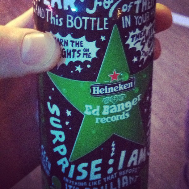 Après avoir bien profité des attractions, les poulains du label ont rappelé à tout le monde que les choses sérieuses se passent sur scène et cela depuis une décade, celle des 00’s, celle d’Ed Banger et de ses amis, celle du renouveau de la French Touch. Et pour ouvrir les hostilités : Krazy Baldhead. Le marseillais est une une toutes premières signatures du label. Et son set accompagne l’entrée de la foule au sein de Edbangerland, en chauffeur de salle super luxe. Les puristes sont devant la scène pendant que les autres s’agglutinent déjà devant les attractions armés du leur passeport de la République de Edbangerland, ou bien sirotent une bière (dont une bouteille collector à l’effigie des 10 ans du label a été dessinée par So Me) au son de la techno du chauve fou. On pouvait d’ailleurs se déshydrater à un stand Le Mansart, du nom d’un bar de Pigalle ou l’équipe a ses habitudes. Mais ce n’est pas pour autant que le tarif des consommations est raisonnable. Comme trop souvent aujourd’hui, il fallait débourser au minimum 7.5€ pour s’offrir une pause désaltérante.